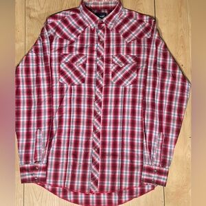 Classic plaid design with button-down front. Features dual chest pockets. Ideal for casual wear.