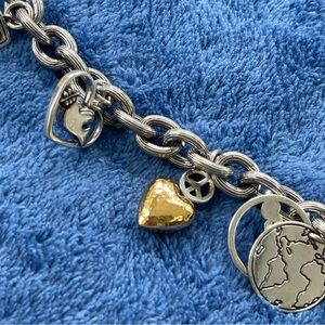 Brighton Silver World Peace Charm Bracelet with Heart and Peace Charms Retired