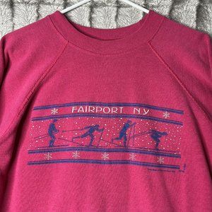 Vintage Fairport New York Hanes Crewneck Pullover Sweatshirt Womens L 42-44 Pink