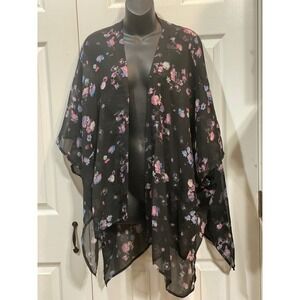 Arizona Jean Co Black Floral Print Open Front Kimono Top Medium Large