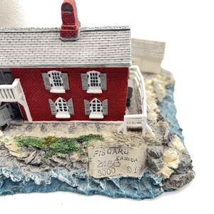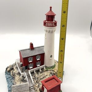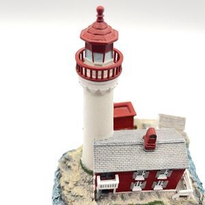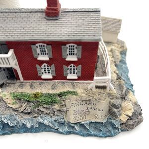 The Harbour Lights Lighthouse figurine from Fisgard, British Columbia is a medium-sized, multicolor resin sculpture featuring a nautical theme. Manufactured in 2001 as part of the Limited Editions collection, this lighthouse figurine stands at 5 inches tall and comes boxed for easy display. Perfect for adults who appreciate American style decor, this painted figurine captures the essence of the seaside with its intricate details and coastal design. Ideal for collectors or those looking to add a touch of nautical charm to their home, this Harbour Lights Lighthouse figurine is a unique and original piece from the 21st century.