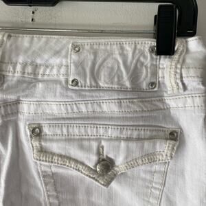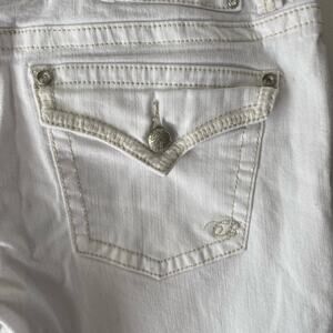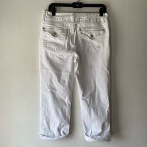 Code Bleu White Womans Cropped Jeans SZ 10 Mid Rise Cuffed Stretch Embellished