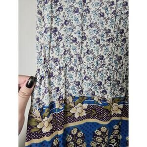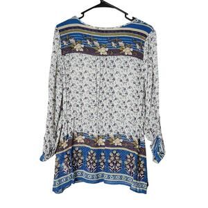 Lucky Brand Savannah Gypsy Boho Peasant Top Blouse Size Medium Blue Floral