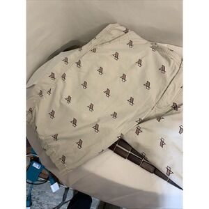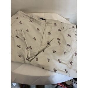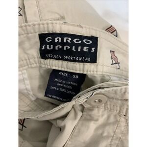 The Cargo Supplies Cotton Shorts for men in size 38 XL feature a beach chair logo and zipper pockets, perfect for casual occasions during the summer, fall, and spring seasons. Made from a comfortable cotton blend twill fabric, these cargo style shorts have a 10-inch inseam and are machine washable for easy care. With a flat front design and regular fit, these beige shorts are ideal for outdoor activities like beach trips or hunting, showcasing a colorful and vibrant theme. Handmade in Vietnam, these shorts offer both style and functionality for the modern man on the go.