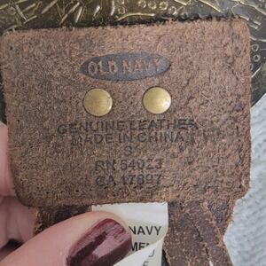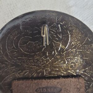 Vintage OLD NAVY Braided Leather Belt Dark Brown Brass Medallion Plate Buckle S