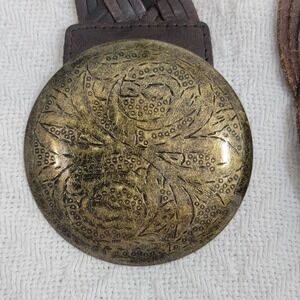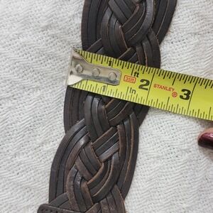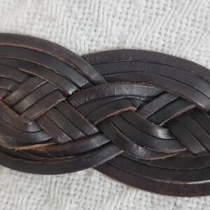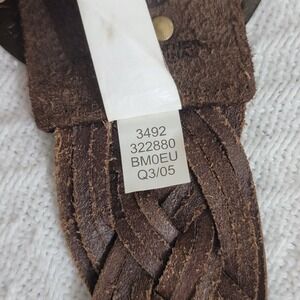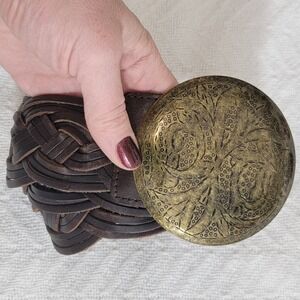 Vintage OLD NAVY Braided Leather Belt Dark Brown Brass Medallion Plate Buckle women's size S