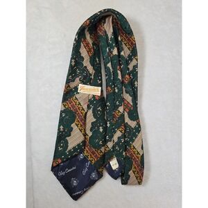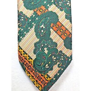 NEW! 1970s Mens Neckie VINTAGE Paisley Floral Green Orange Tapestry Oleg Cassini