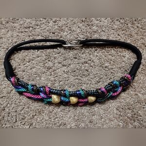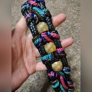 Vintage Bungee Belt With Braided Multicolor Woven Cords And Golden Beads