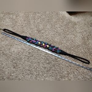 Enhance your style with this vibrant Vintage Bungee Belt With Braided Multicolor Woven Cords And Golden Beads, Perfect for adding a pop of color to any outfit. measurements included in photo, all questions welcome!