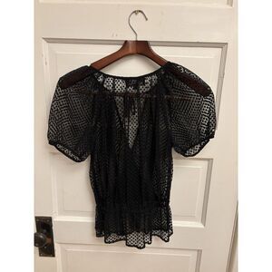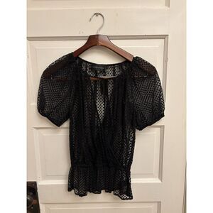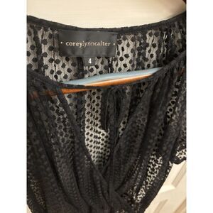 Corey Lynn Calter Black Sheer Dot Top Peplum Tie Front Size 4