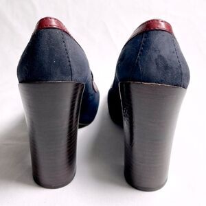 Step out in style with these Tory Burch flats. Featuring a chic blue and red design, these shoes offer both comfort and elegance. Perfect for any occasion.