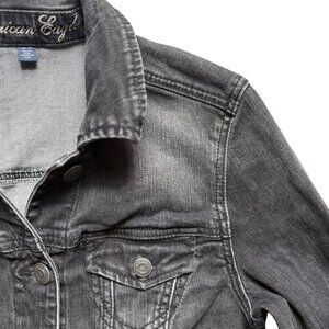 AE Distressed Stretch Black Denim Jacket for Fall Size M