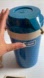 Vintage Aladdin Pump-A-Drink insulated beverage jug in classic blue, complete with original box and instruction booklet.