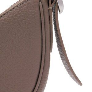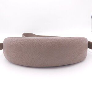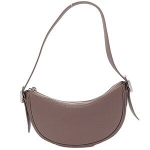 Quince Italian Leather Mini Crescent Shoulder Bag in taupe, putty. Drawing inspo from the '90s, Quince's Italian Leather Mini Crescent Shoulder Bag is a modern take on a classic. Made with super soft Italian pebbled leather and outfitted with an adjustable shoulder strap, this sleek carry-all has just enough space for all your essentials. One interior snap pocket. Zipper closure. Adjustable shoulder strap. No dust bag. Flaws: the strap is kind of wonky when not hanging on a shoulder but straightens out when worn. Zipper has some waves - no affect on opening or closing. In very, very good used condition.
