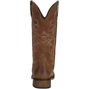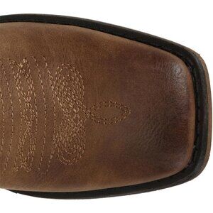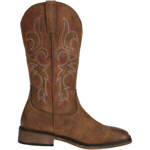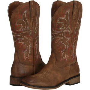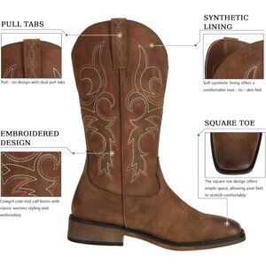 ⚡Women's Brown Square Toe Cowgirl Cowboy Boots Mid Calf With Chunky Heel