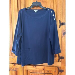French Terry gray with black. Cotton, polyester and spandex. V insert at neckline. Approx. armpit to armpit measure is 29 inches. Approx. length is 29.5 inches. The hem and bottom of sleeves roll up.