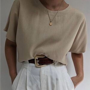 Na Nin silk top, raw silk tee, silk t shirt women, minimalist silk blouse, slow fashion top, made in USA silk, boxy silk tee, neutral silk top, blush silk shirt, capsule wardrobe top, breathable silk blouse, ethical fashion, quiet luxury top, relaxed fit silk, elevated basic top, short sleeve silk shirt, modern minimalist clothing