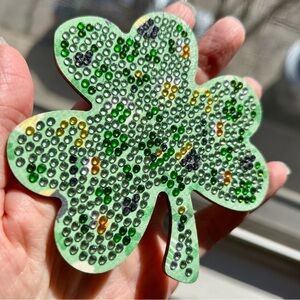 2/$16 - No. 01 - Sparkly, Diamond Art Shamrock Clover Holiday Coaster, Green