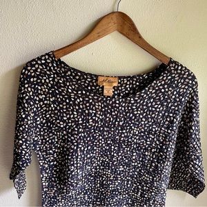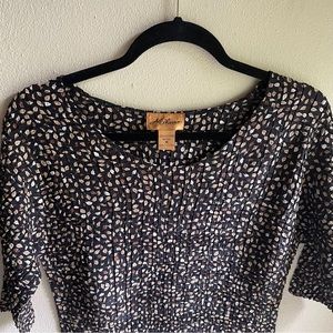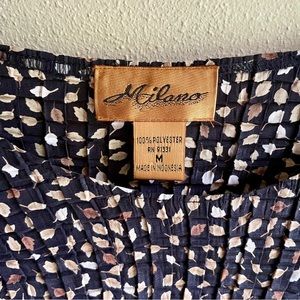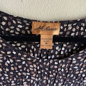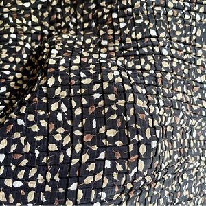Milano Crinkly Plisse Scoop Neck 3/4 Sleeve Blouse. Black w Autumn Leaves. Med