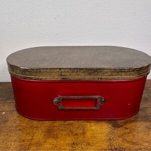 Set of two vintage style metal storage boxes in red and yellow. Perfect for organizing and adding a rustic touch to your space.