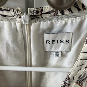 Reiss Elegant Cream and Brown Leaf Print Dress