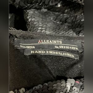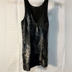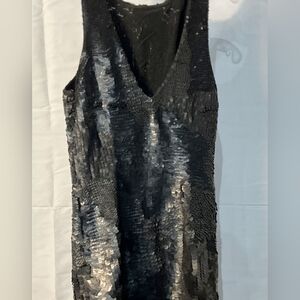 Chic black sequin dress. Perfect for evening events. Backless design adds allure.