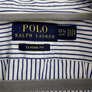 Polo Ralph Lauren Classic Fit Button Up Blue Stripe Casual Preppy Sz 17.5 34/35