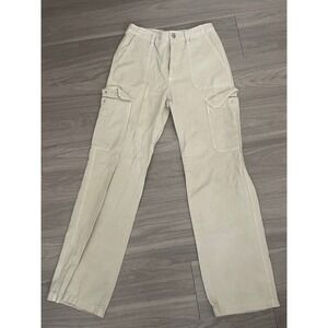 Zara Women Cream Beige High Waisted Cargo Pants Straight Leg Size 4 Utility