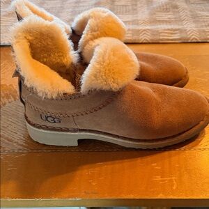Stylish UGG ankle booties. Soft shearling lining. Perfect for cozy comfort. Very good condition. Inside little dusty. Other than that great condition.