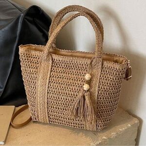 Elevate your style with this chic woven tote bag, featuring a charming tassel detail. Ideal for everyday elegance.