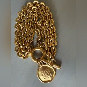 GORGEOUS AUTHENTIC MATTE BRUSHED GOLD GIVENCHY NECKLACE. TOGGLE GLASP. RUNWAY COUTURE GIVENCHY LOGO NECKLACE