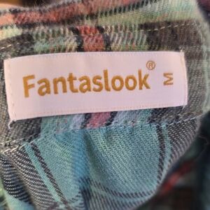 Stylish plaid button-up shirt with a classic design. Features a mix of green, pink, and black colors. Perfect for casual wear.