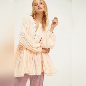 Free People Keeping It Cool Pullover Peach Beachy Oversized Gauzy Size M
