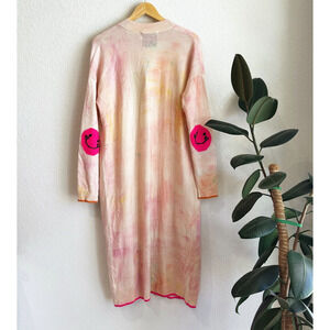 Kerri Rosenthal Cashmere Cardigan Medium Duster Patchwork Smiley Face Tie Dye