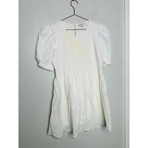PETER SOM x RTR White 100% Cotton Puff Sleeves Eyelet Embroidered Dress Size 6