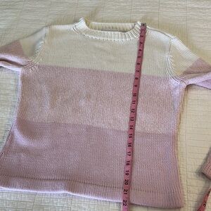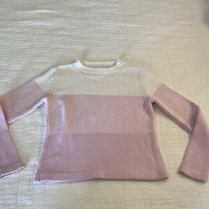 Soft pastel pink and cream colorblock knit sweater in a comfy medium weight.