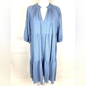 The White Company Blue Tiered Midi Dress Pockets 100% Organic Cotton Size 8