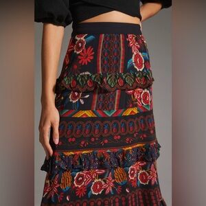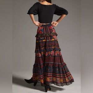 Farm Rio Garden Print Tiered Maxi Skirt, Size S