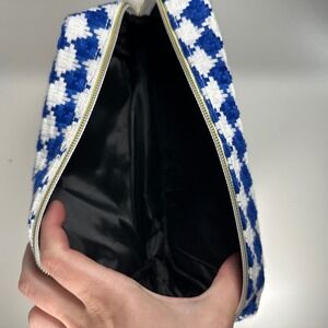 Blue Houndstooth Tweed Crossbody Bag Gold Hardware Clutch Purse
