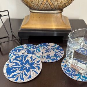 • Set of 4 coordinating blue floral Diamond Art coasters