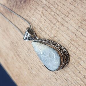 Large Vintage Moonstone Sterling Silver Cabochon Pendant Necklace