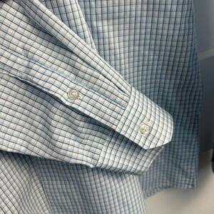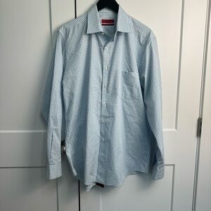 Alfani Long Sleeve Men's Button Down Dress Shirt White Blue Size 16 Easy Care