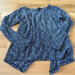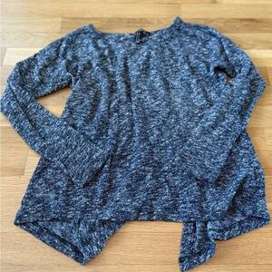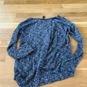 Stylish knit sweater with a blend of black and gray. Ideal for layering.