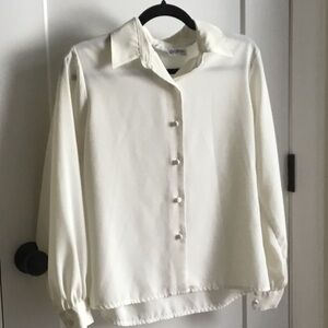 Chic ivory button-down by Yves St. Clair. Features classic collar and elegant buttons. Perfect for versatile styling.