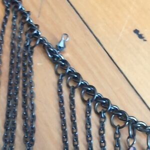 Chic necklace with black chains and silver beads. Perfect for stylish outfits.