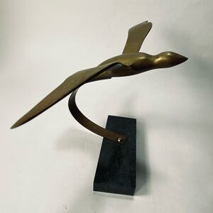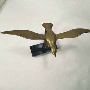 This is a beautiful solid brass, seagull sculpture, is attached to a marble base, which can be moved and also has some springy movement to it.