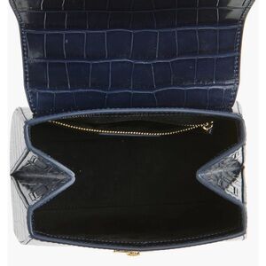 Veronica Beard Croc-Embossed Crest Lock Bag in Navy