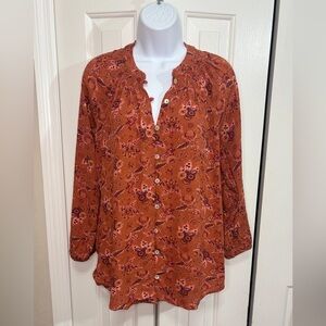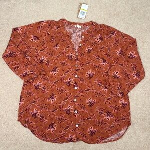 Mason & Belle Rust Floral Button Front Blouse | Size M | NWT