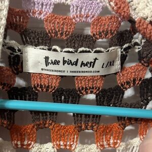 Chic crochet cardigan with a blend of warm tones. Ideal for stylish layering.