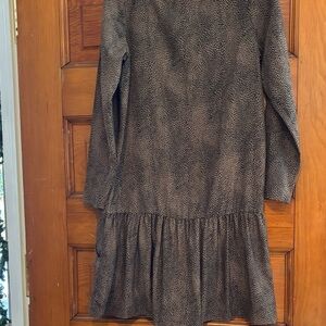 NWT Renvy Animal Print Brown and Black Ruffle Drop Waist BOHO Midi Dress